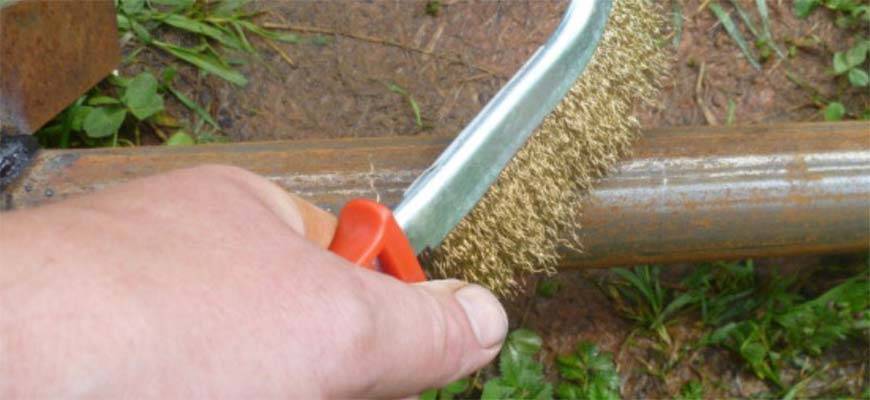 - зачистить поверхность металла, механически счистив верхний слой ржавчины;