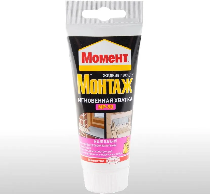 Такой клей используется для монтажных работ внутри и снаружи помещений. Позволяет загерметизировать отверстия и склеивает почти любые материалы, кроме пластика. Поверхность обязательно должна быть сухая и гладкая.