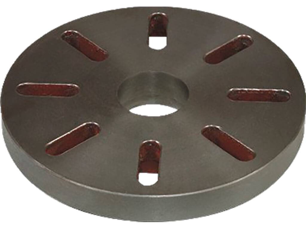 В конструкции этой разновидности сделаны сквозные отверстия в соответствия с размерами заготовки. Посередине диска также есть отверстие большого размера. Оно имеет резьбу, с помощью которого шайба крепится на вал.