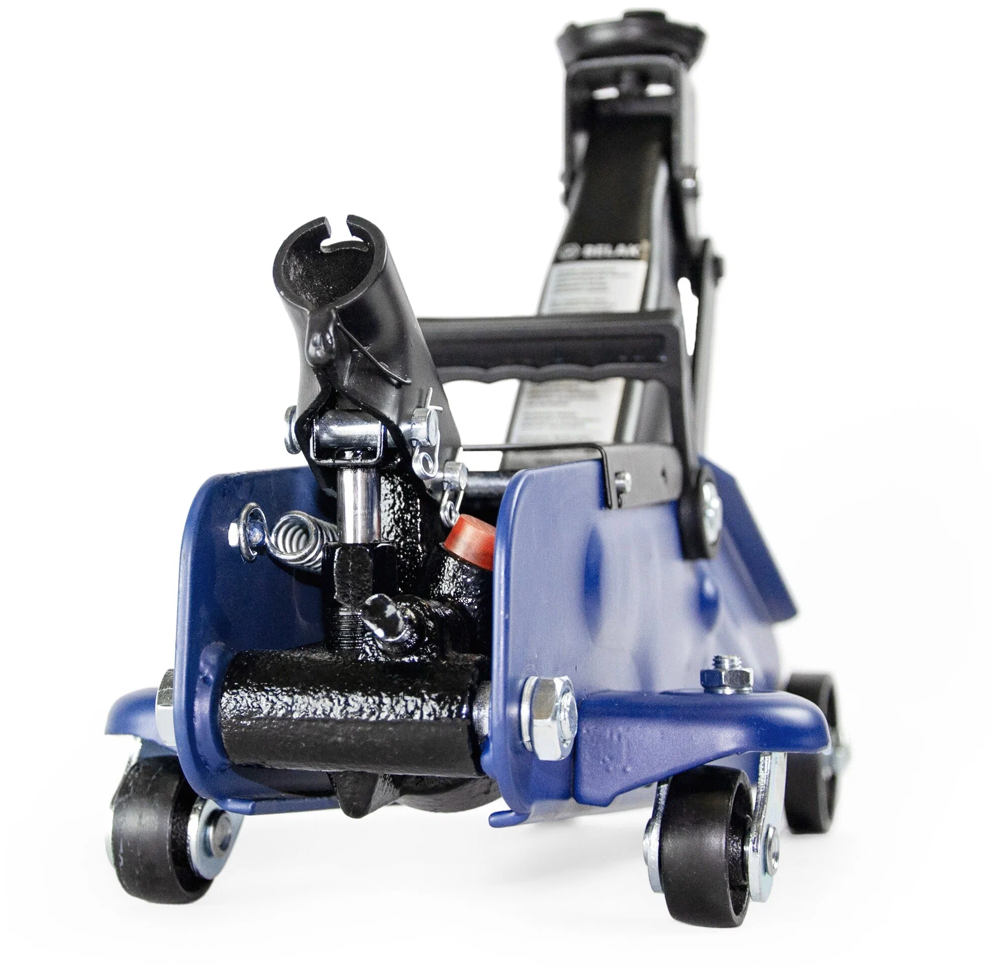 Отличительной чертой этого типа домкрата является наличие платформы и колес. Его удобно перемещать с одного места на другое, а ручка в конструкции выполняет функции подъемного рычага