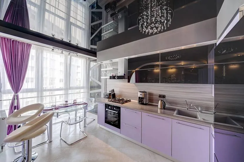 Черный потолок для фиолетовой кухниИсточник potolkoff.kiev.ua