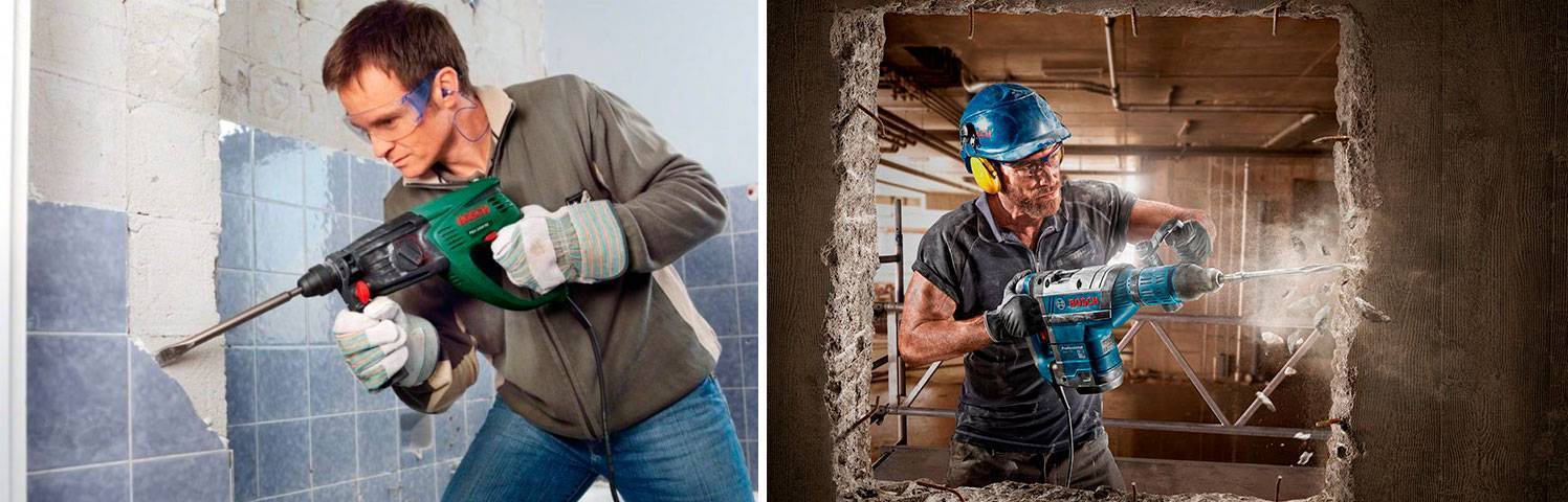 В быту, хозяйственных нуждах и при выполнении ремонтов непромышленного назначения чаще используют перфораторы с электроприводом. Такой вариант удобен с точки зрения подключения инструмента (требуется только электропитание) и безопасности работ при его использовании.