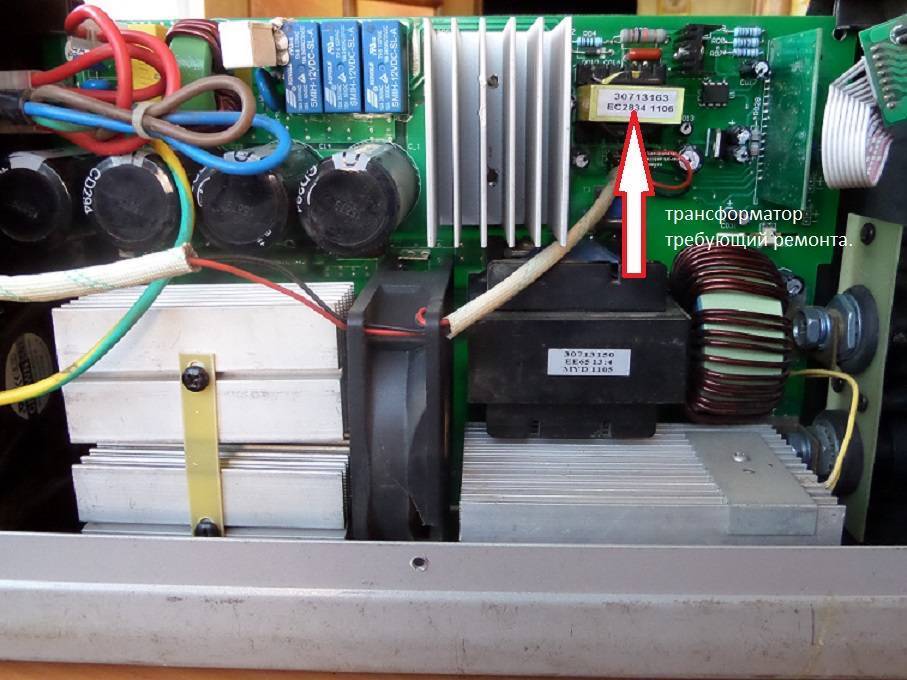 Однако радоваться было рано, замерив напряжение на выходе сварочника, оказалось что его нет, а в режиме холостого хода должно быть примерно 85 вольт. Попробовал пошевелить плату, помните со слов хозяина это влияло, но ничего.