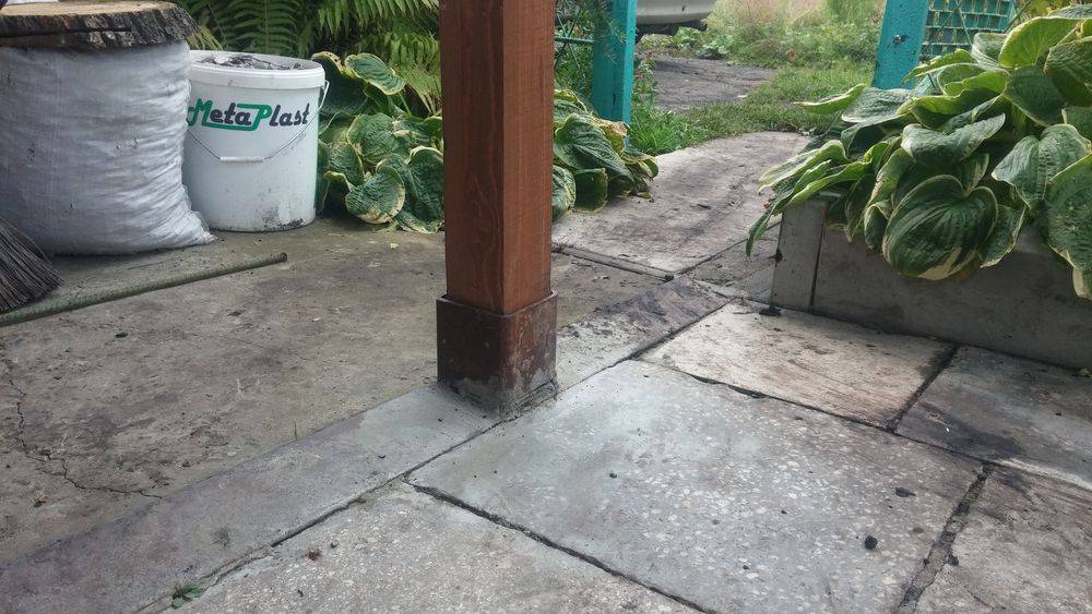 Так как беседка весит немного, сооружают свайное или столбчатое основание. Для этого берут металлические или деревянные сваи, кирпич или асбестоцементные трубы, которые затем заполняют бетоном.