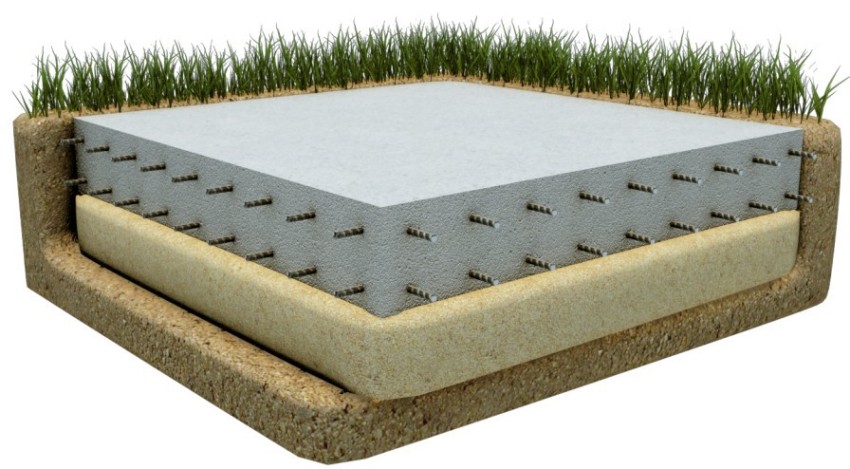 - Подготавливают на грунте ровную и твердую площадку. Можно даже не снимать гумусный слой — достаточно срезать растительность, выравнять и утрамбовать поверхность.
