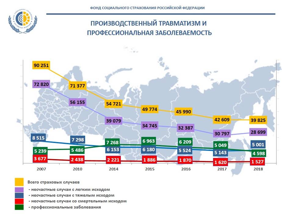 На сегодняшний день, не смотря на внедрение новых, более современных и безопасных для человека технологий, остается много отраслей, где травматизм представляет собой значительную проблему. Таким образом, можно сказать, что уровень производственного травматизма в России сегодня в первую очередь определяется технологическим уровнем производства. Кроме того, статистические данные, сильно отличаются от региона к региону по уровню регистрируемости этого показателя.
