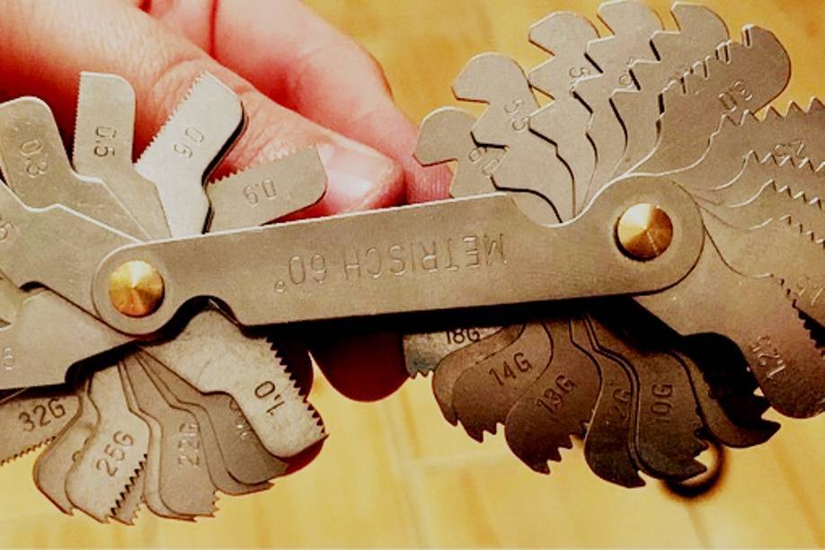 Для измерения резьбы также можно воспользоваться резьбомером. Это его прямое назначение. Резьбомер представляет собой набор пластин с выступающими зубьями под конкретную резьбу объединенных на единой оси. Размер резьбы выгравирован или нанесен несмываемой краской на самой пластине. Проверка резьбы выполняется путем прикладывания к резьбе наиболее близких по размеру пластин. При полном совпадении, без зазоров резьбу можно считать определенной, а ее размер посмотреть на пластине резьбомера. Выпускаются резьбомеры отдельно под метрическую, дюймовую резьбу или под оба вида.