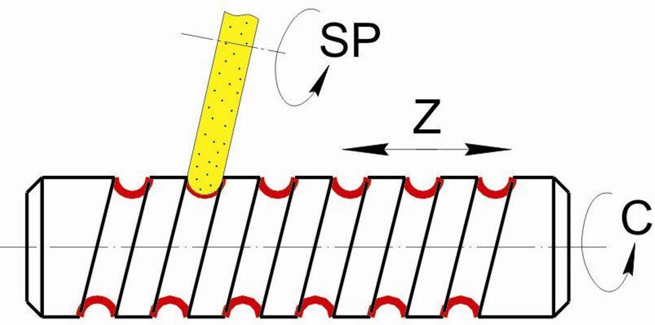 - Линейные и круговые датчики обратной связи фирмы «Fagor» по программируемым координатам- — поперечное перемещение бабки шлифовальной – координата Х; — продольное перемещение салазок с бабкой шлифовальной – координата Z; — угловой поворот головки шлифовальной в вертикальной плоскости (угол наклона витка резьбы) — координата А; — вращение обрабатываемой детали — координата С