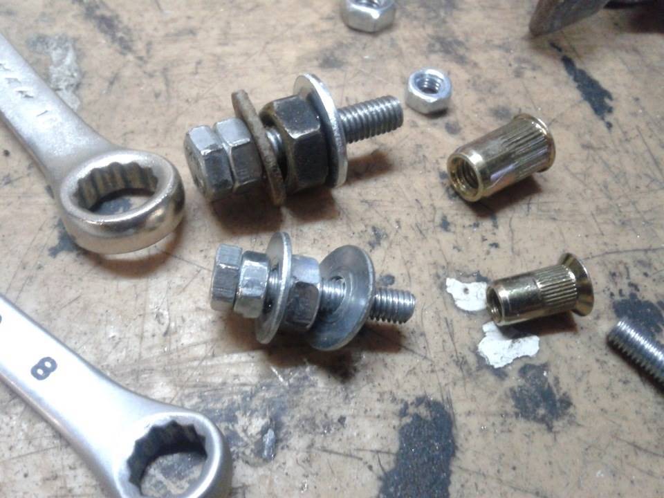 - для установки надо приготовить – резьбовую заклепку, дрель, винт или болт, одну соединительную гайку (или три обычных), шайбу увеличенного размера.