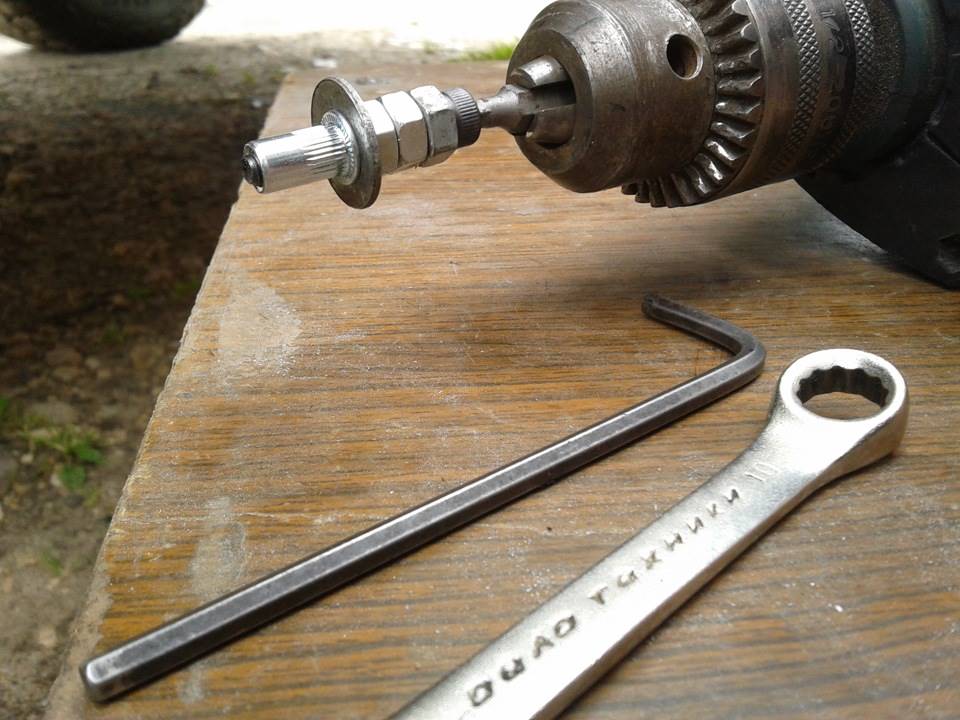 Алгоритм монтажа элемента с резьбой сложно назвать неподъемным, но важно знать определенные нюансы. Если есть возможность, то лучше использовать заводской заклепочник. При желании его можно собрать самостоятельно, один вариант будет рассмотрен ниже
