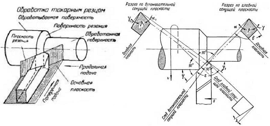 Рис. 2. Условные плоскости (резания и основная) для изучения геометрии резца
