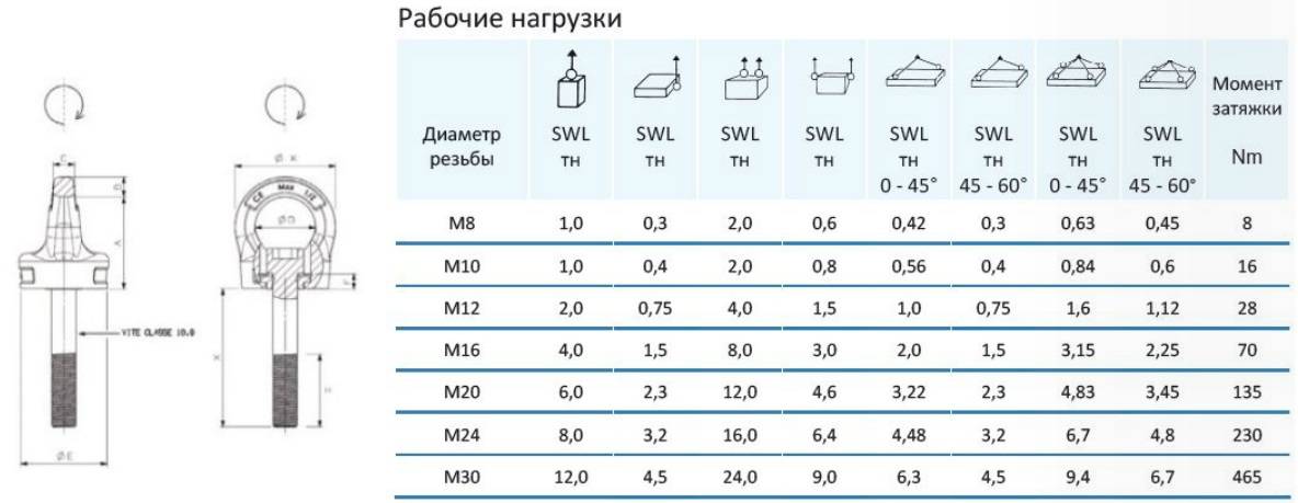 Максимальная рабочая нагрузка на рым-гайку DIN 582: