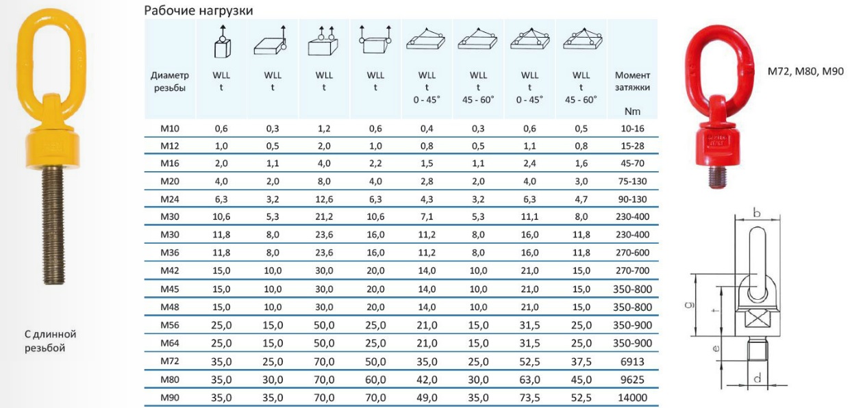 Рабочая нагрузка (сила приложена вдоль оси рым-гайки, кг (1 кН=100кг) | 140 | 230 | 340 | 700 | 1200 | 1800 | 3200 | 4600 | 6300 | 8600 | 11500 | 16000 | 20000 | 28000 | 40000 | ||