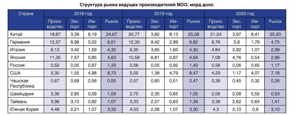 Станкостроение является одной из основных отраслей и драйвером экономики любой индустриальной страны. Ведущими странами в производстве и экспорте станков являются Китай, Германия, США. Их совокупная доля составляет более 60% от общего производства и экспорта оборудования в мире.