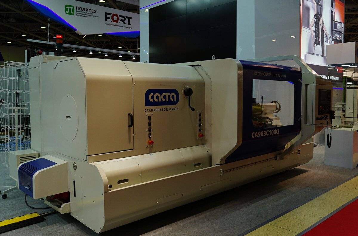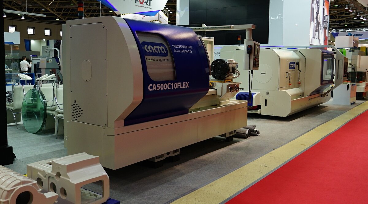 13. Ну и Саста — наверное крупнейший в России станкостроительный завод. Завод так же входит в группу БПК. На стенде был представлен токарный станок серии СА500.