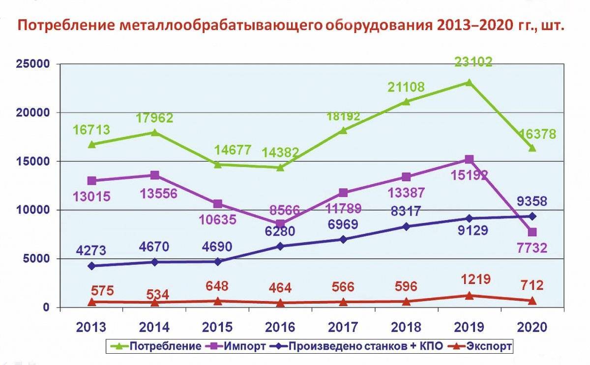 Современный рынок металлообрабатывающих станков и кузнечно-прессового оборудования в России показывает, что основная часть потребляемого оборудования приходит на импорт, а доля отечественного станкостроения ничтожно мала.