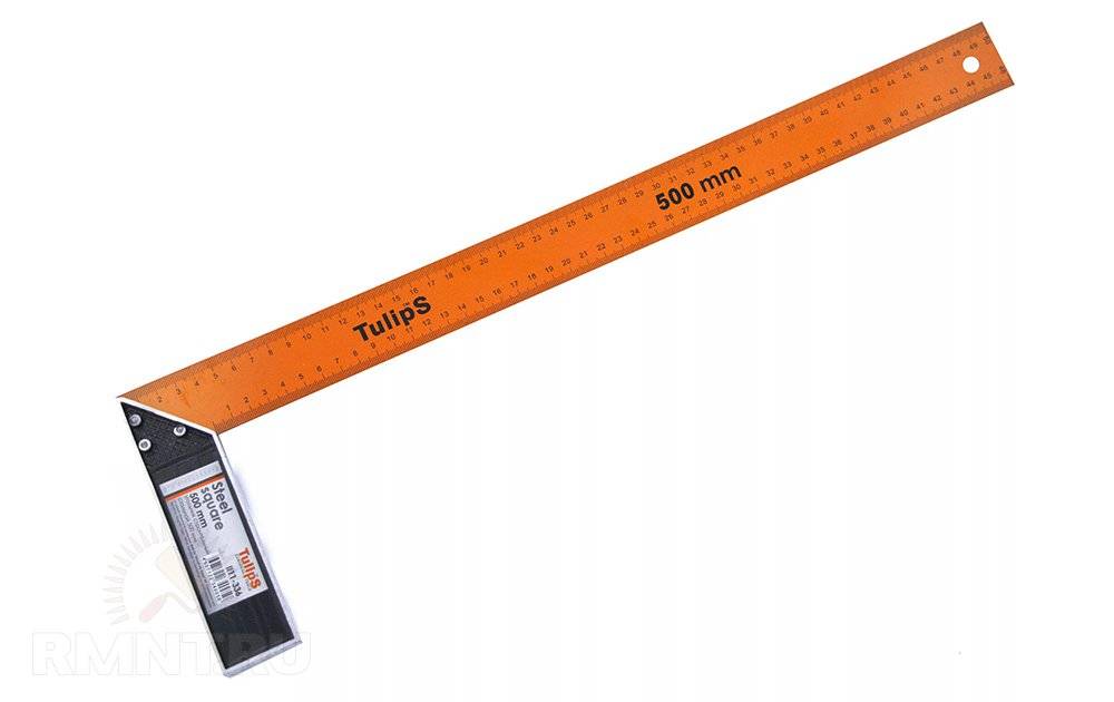 5. Угольник для выведения прямых углов, оптимальная длина плеч — не менее двух длин используемого кирпича, то есть от 50 см.