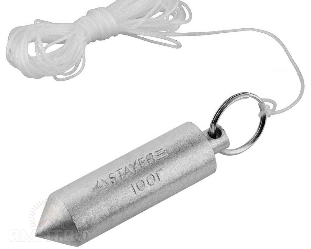 Небольшого размера груз, весом 200-400 гр., выполненный в форме конуса с заостренным концом, закрепленный на основании при помощи синтетической неэластичной нити, длинной 300 см. Если требуется производить контроль вертикальной плоскости конструкции с высотой в несколько этажей, груз по массе должен быть не менее 600 граммов.