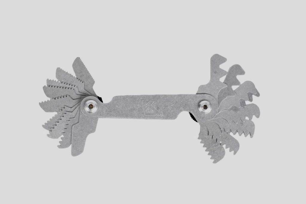 Это прочное и простое в использовании приспособление выпускается проверенной временем европейской компанией. Набор состоит из 20 вспомогательных элементов, которые позволят осуществить замеры в диапазоне 0,4-6 мм. В основе лежит использование стандартной метрической системы. Общий вес – 30 г. Производится на территории Германии.