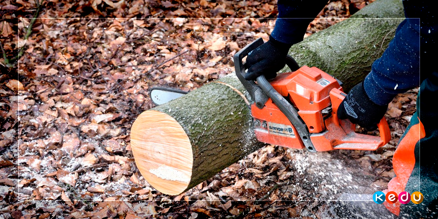 Процесс распиливания происходит благодаря большой скорости движения пильной цепи. Обычно она составляет около 9000 оборотов в минуту. Звенья снабжены выступающими шипами. Они цепляются за дерево и разрезают его.