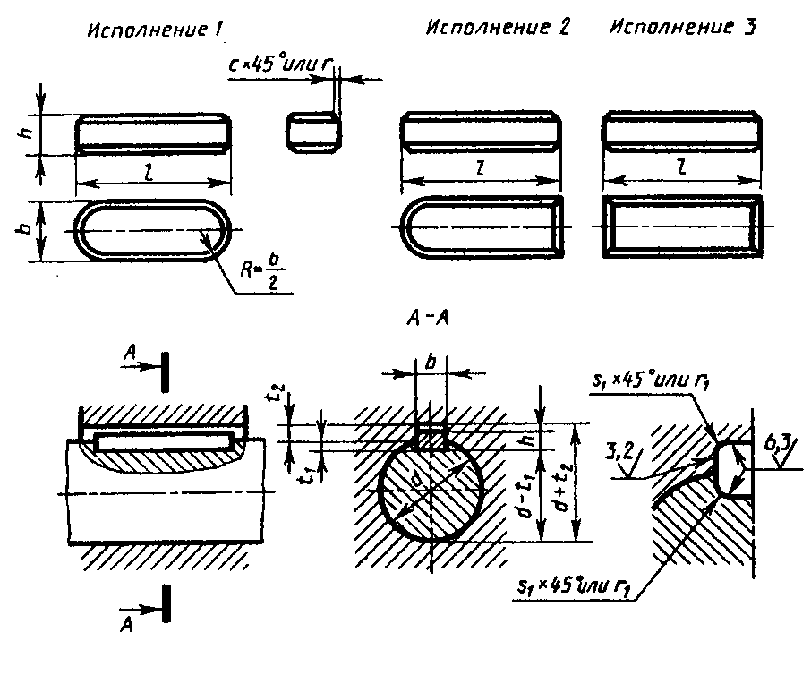 На чертежах обозначение призматических шпонок происходит исходя из нормативного документа ГОСТ. Они делятся на шпоночные пазы: высокие, нормальной высоты и направляющие. Рабочими гранями у них являются боковые.