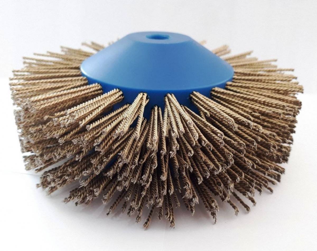 Основным компонентом шлифовки являются скрученные стальные нити, область применения — обработка сварочных соединений (швов и стыков). Качественное полирование придает всем деталям товарный вид. Щетки отличаются весьма высокой жесткостью и запасом прочности, длительностью активной эксплуатации.