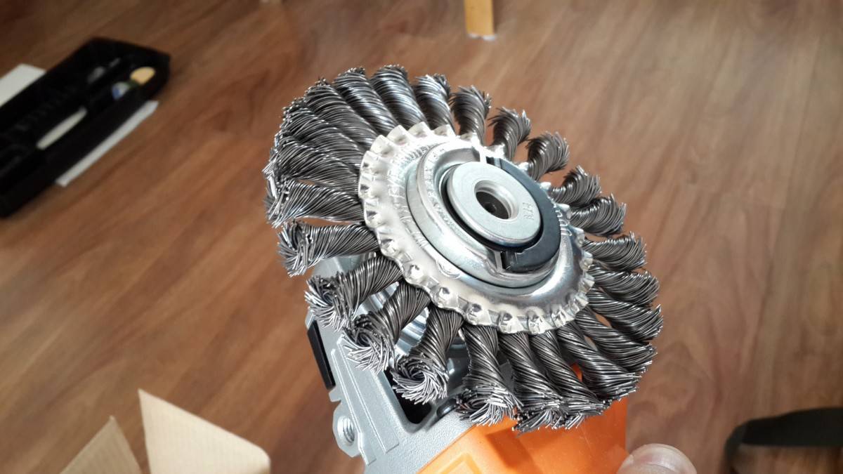 Работа на «медленной» болгарке с насадкой для оборотистого агрегата будет весьма трудоемкой и займет значительно больше времени, нежели со щеткой, соответствующей возможностям УШМ.