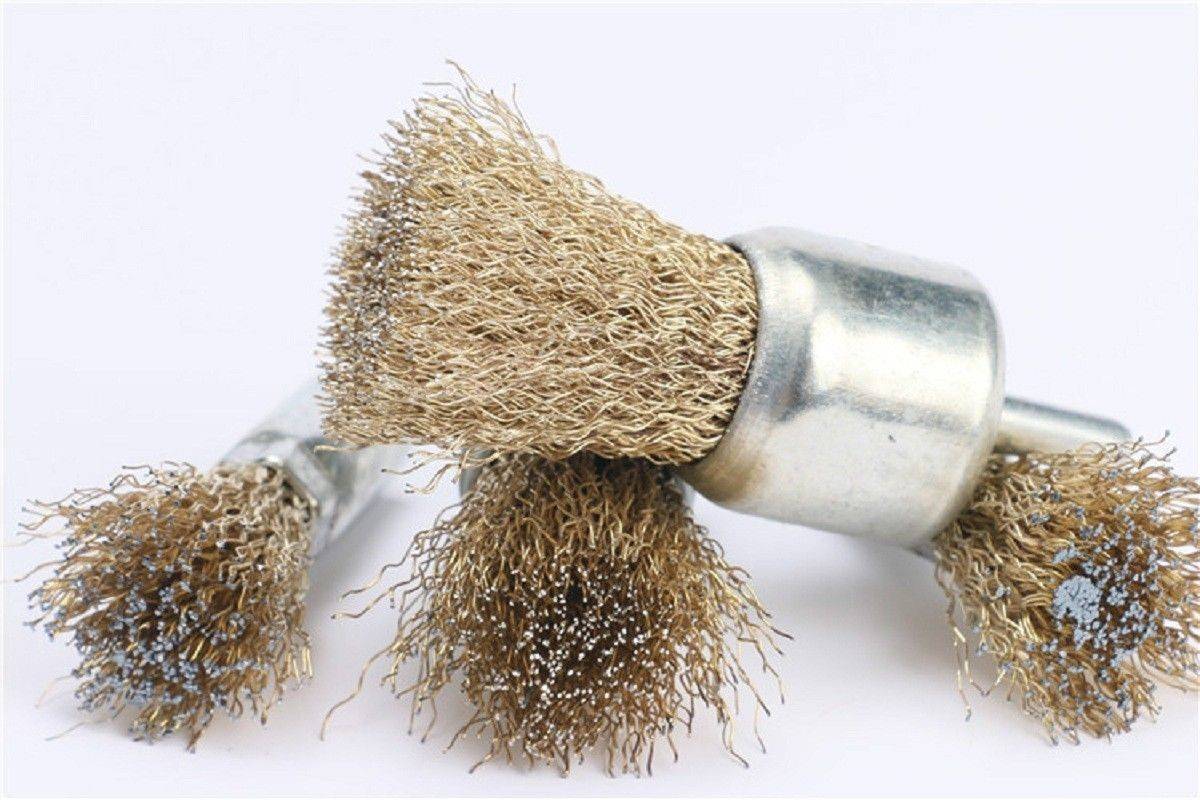 Если вам нужно провести крацевание в труднодоступных местах, то здесь будет незаменима коническая щетка. Выполнение этой задачи достигается за счет конической формы и разных диаметров. Если нужно обработать стальное или чугунное изделие, то применяется жгутовая щетка