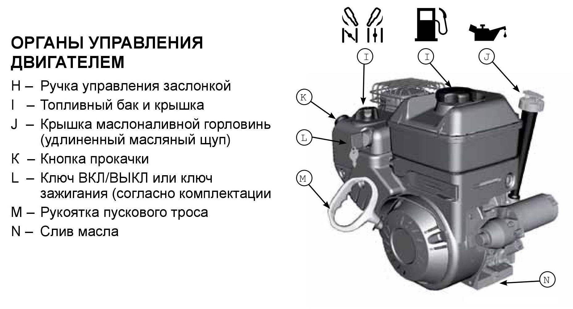- Мотор: бензиновый, 1-цилиндровый, с воздушным охлаждением