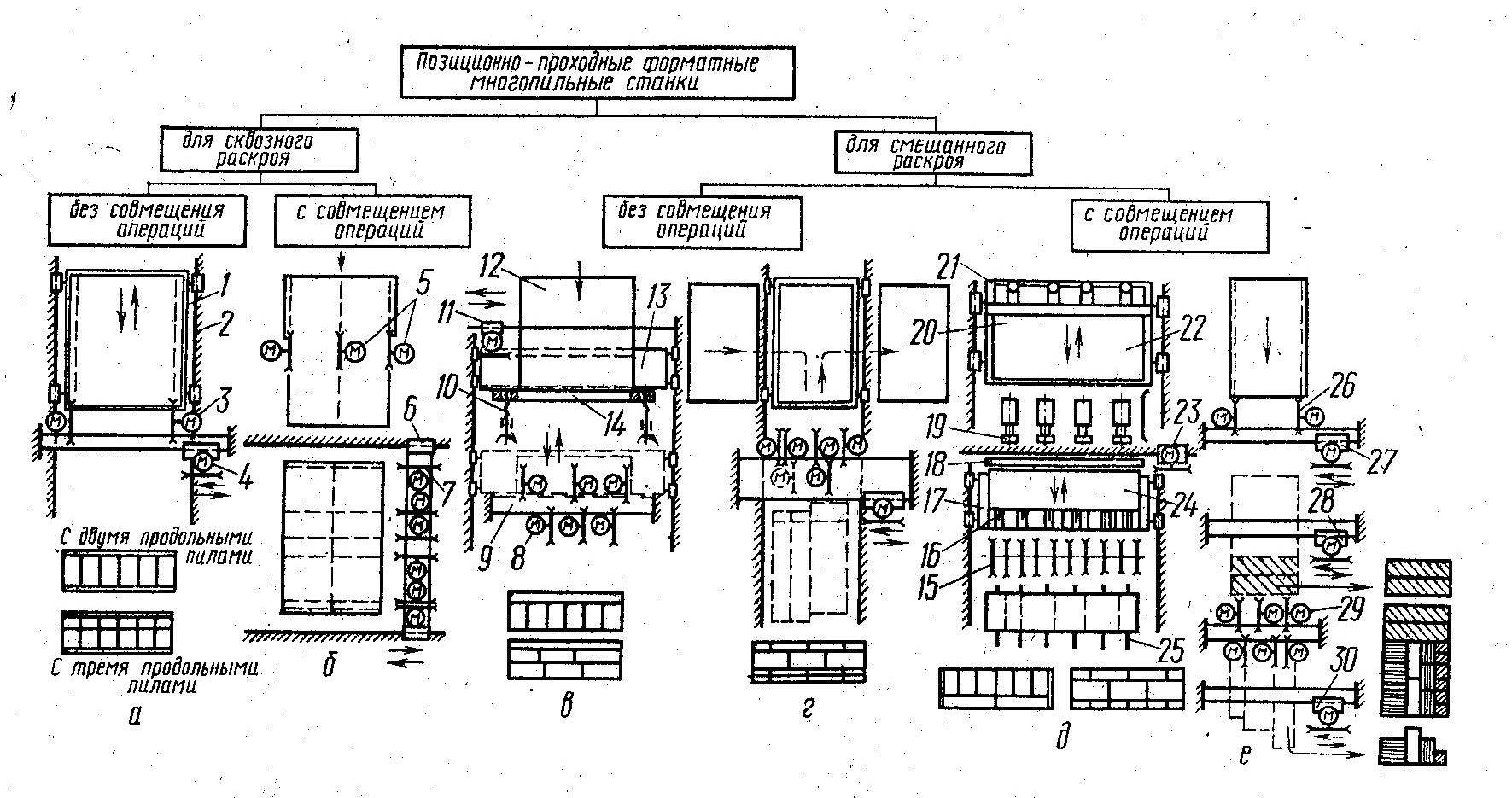 Рис. 5.4. Классификация многопильных форматных позиционно-проходных станков