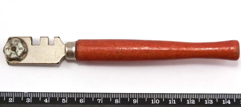 - Роликовый — из названия понятно, что режущий элемент представлен в виде ролика из твердосплавных материалов. Зачастую в качестве таковых используется карбид вольфрама или быстрорежущая сталь. Рукоятка изготавливается из дерева или пластика, и может иметь прямую форму или изогнутую. Форма рукоятки влияет на величину прикладываемой силы, которая может приходиться на пальцы рук (при использовании прямого инструмента), и локтевой сустав (когда применяется изогнутая рукоятка). Головка оснащается несколькими роликами, которые при притуплении не подлежат заточке. После износа роликов, проще приобрести новый инструмент, стоимость которого стартует от 100 рублей