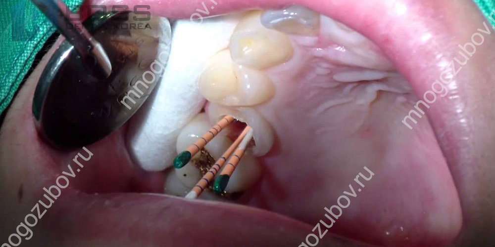 — Его вкручивают в корневой канал, а сверху ставят коронку или пломбу.