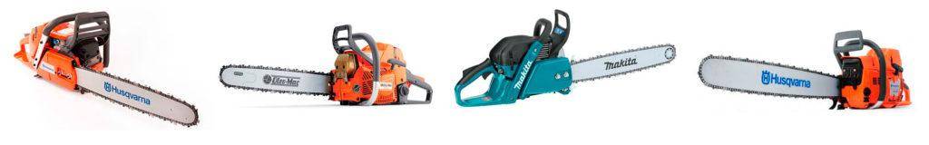 В бензопилах разработаны цепной тормоз QuickStop для автоматической остановки устройства во время опасности обратной отдачи, удара или затягивания в распил и антивибрационная система.