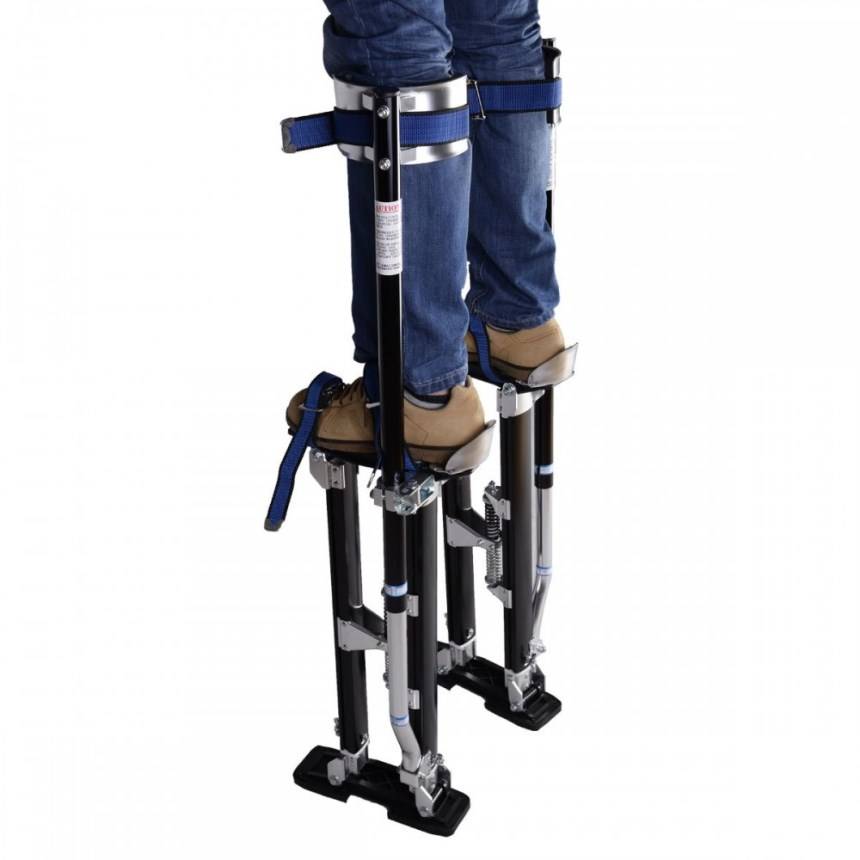 Так же используются специальные предметы, такие как стремянки, лестницы , леса. Однако перевозить их с места на место может быть не очень удобно, так как они габаритные. Поэтому, в последнее время огромную популярность приобрели строительные ходули.