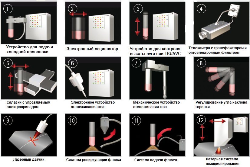 Автоматизированные позиционеры повышают производительность сварочных работ за счет вращения и поворота рабочего стола шаговыми электродвигателями. Они обеспечивают высокую точность установки сварочной головки по отношению к деталям. Программируемыми устройствами с манипулятором сварочной горелки, через которую подается присадочная проволока, выполняют швы сложной конфигурации высокого качества под флюсом и среде инертного газа в автоматическом режиме. Скорость вращения у разных моделей регулируется от 0,01 до 16 об/мин с контролем по цифровому индикатору.