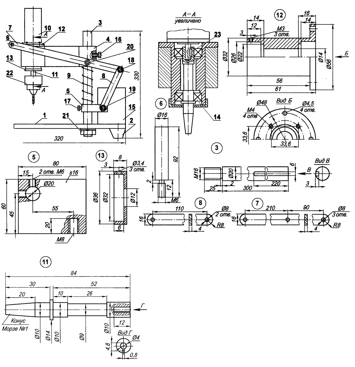 Лучше изготовить или купить ➜— Сверлильный станок своими руками ➜— Распространенные ошибки ➜— Чертежи ➜— Расположение основных конструктивных элементов.