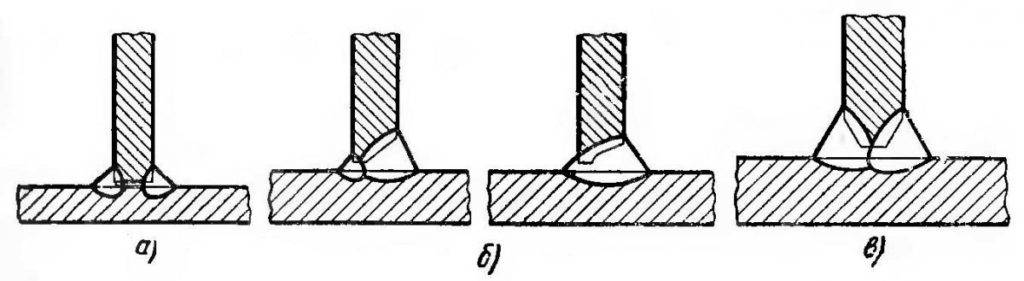 Это сварные соединения двух металлических деталей под любым углом. Если заготовки разной толщины, толстостенную размещают снизу, чтобы на тонкой не появились прожиги и подрезы, сварочную ванну создают за счет плавления металла толстой заготовки. Для повышения прочности соединения швы накладывают с обеих сторон. Внутренний угол сваривают малым током, чтобы снаружи не образовалось закругление.