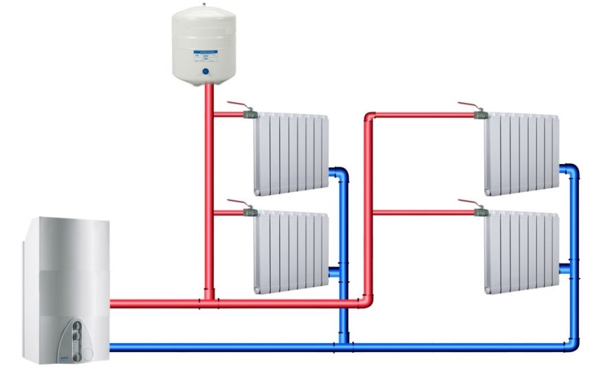 Оптимальный выбор для индивидуального обогрева – двухтрубная схема. Она имеет такие преимущества: