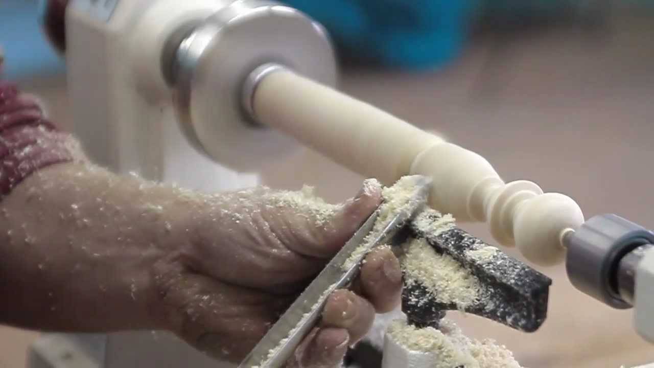 Придание формы дереву происходит во время вращения отделываемого материала и использовании инструмента для резки.