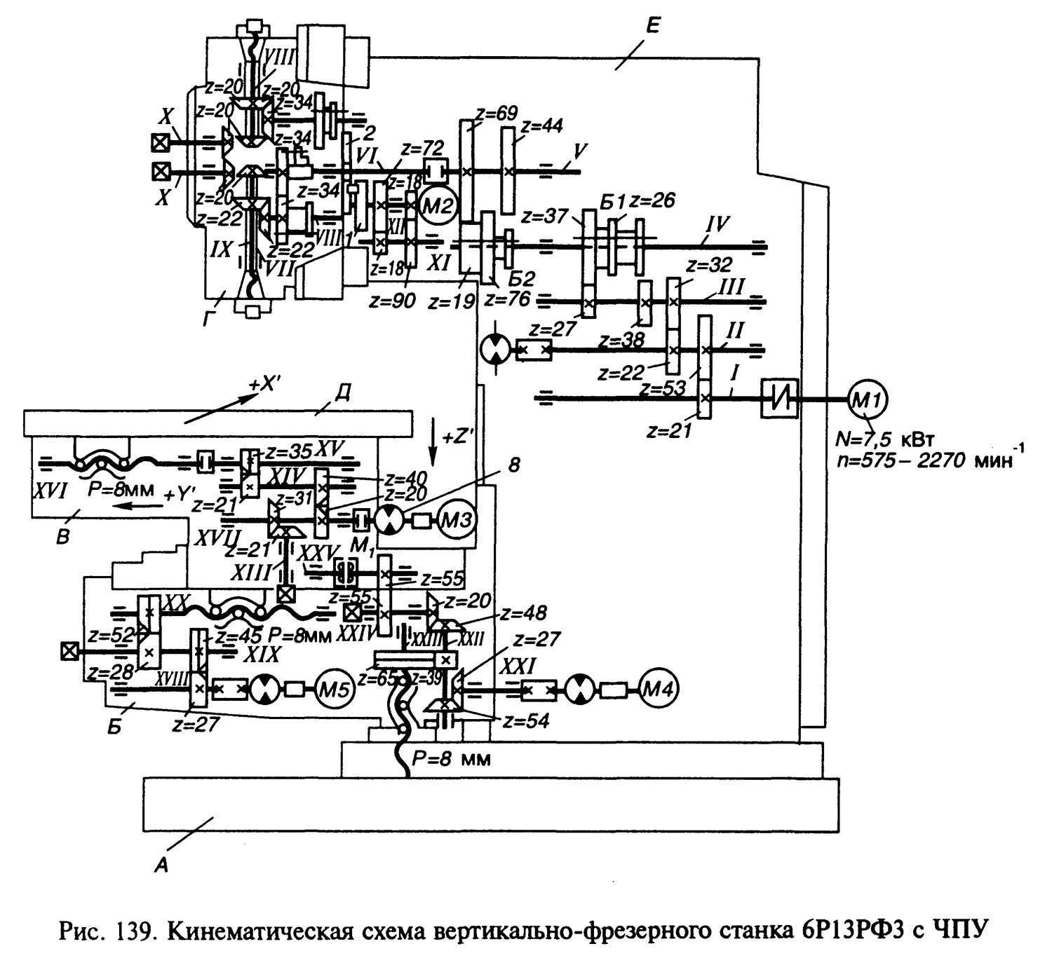 Кинематическая схема фрезерного станка с ЧПУ 6р13рф3