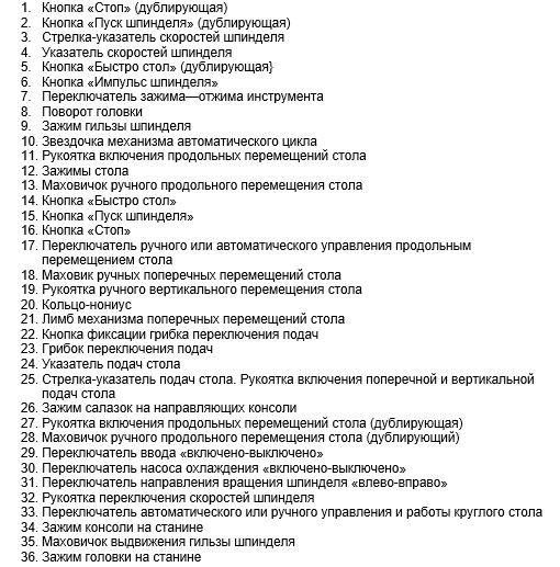 Перечень органов управления фрезерным станком ВМ127