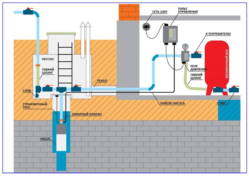 Для автономного водоснабжения частного дома из скважины используют несколько вариантов с применением различных устройств. Так как вряд ли кто-то захочет включать и отключать насос, подающий воду в дом, вручную, в каждый из схем обязательно должен присутствовать прибор, проводящий данные операции в автоматическом режиме.