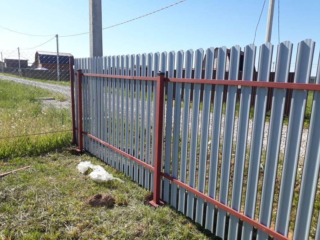 Еще один важный момент — последующий монтаж забора. Тут возможны два основных варианта. В первом случае после вкручивания свай над поверхностью остаются достаточно длинные фрагменты (высотой 2—3 метра). Эти части свай будут играть роль опор для забора. Непосредственно к ним можно крепить профнастил, сетку-рабицу и пр.