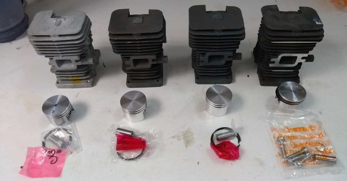 При покупке поршневой бензопилы стоит обратить внимание на внутреннюю поверхность цилиндра, которая должна быть отполирована и иметь глянцевый блеск. При наличии повреждений, царапин специалисты не рекомендуют устанавливать такой цилиндр. С целью повышения компрессии в рабочем агрегате и, как следствие, увеличения мощности, многие производители устанавливают по два поршневых кольца
