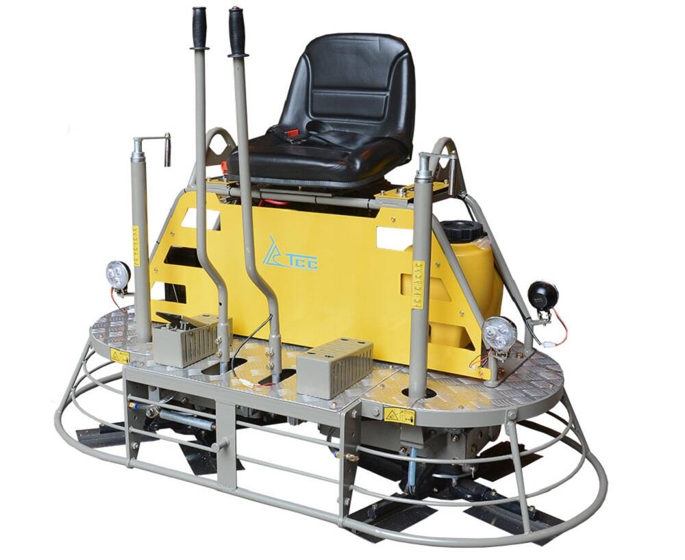 Устройство для профессионального использования в строительных процессах на площадях более 0,7 тыс. м2. Это самоходная высокопроизводительная машинка с крупными габаритами, оснащенная 2-мя затирочными лопастями сечением от 60 до 120 см. Оснащается электрическими или жидкотопливными двигателями. Существует линейка устройств, которые оснащаются гидравликой, и их движение регулируется джойстиками. Место оператора — кресло, что располагается между роторными установками. Устройства бывают с высоким и низким размещением над уровнем обрабатываемой поверхности.