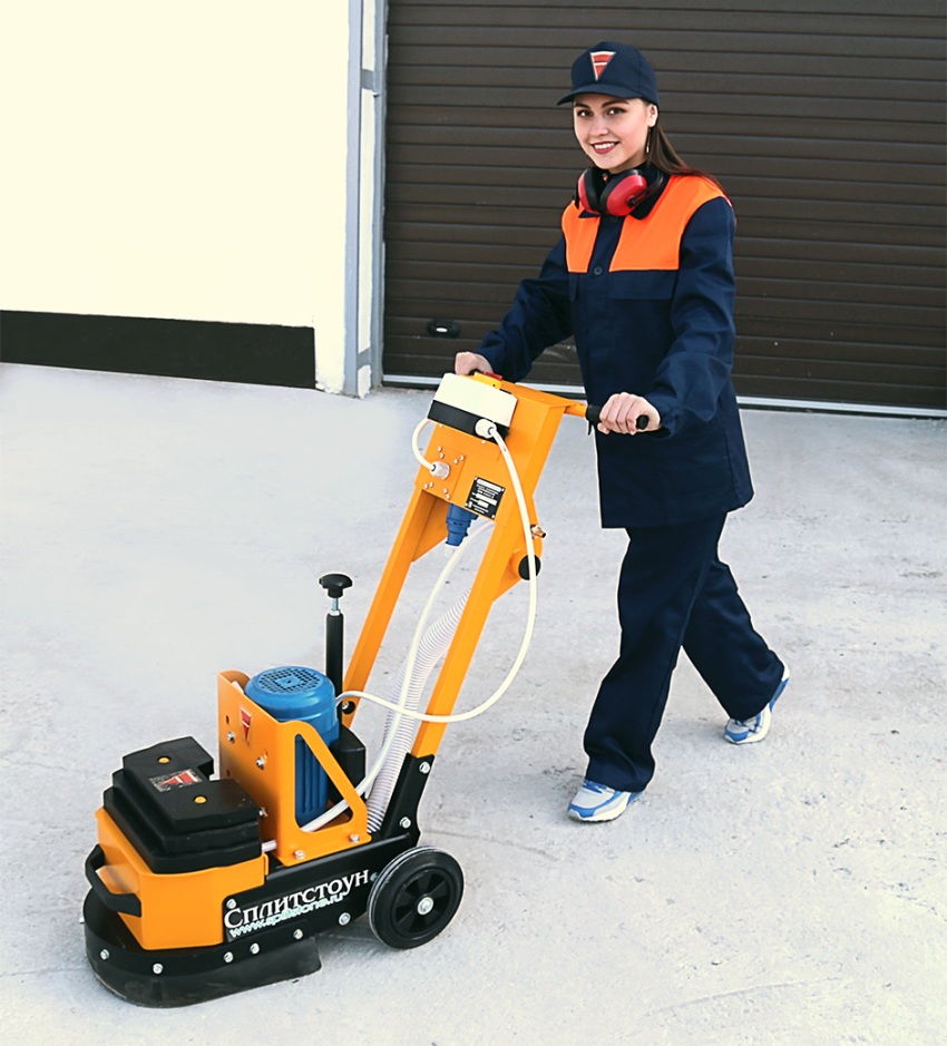 Профессиональное устройство для шлифовки бетонной поверхности имеет довольно сложную конструкцию.