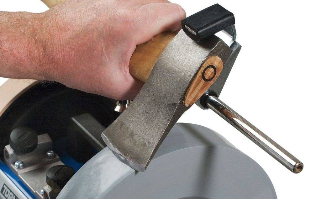 Выполнить заточку можно вручную, или на различных наждачных аппаратах. Электроточило представляет собой установку с абразивным кругом, который способен развивать высокую скорость обращения. Перед тем как заточить топор болгаркой следует подготовить дополнительные инструменты: точильный камень, доводочную пасту, элемент для правки круга, угломер и защитные средства.